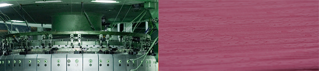 A computer Jacquard machine is used to knit patterns on solid jersey materials. By drawing the desired pattern and inputting it into the computer, it is possible to knit the desired pattern without printing. For this reason, this method is used for high-quality fabrics.